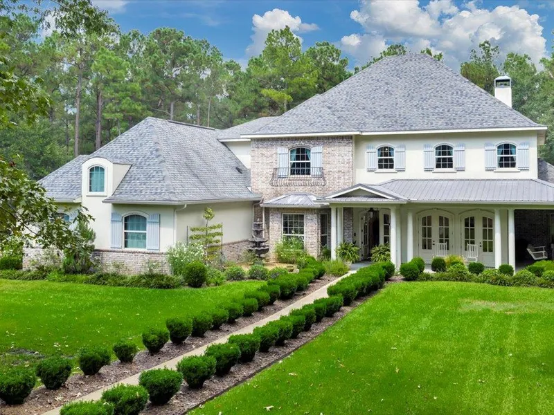 Welcome to your private retreat on 5 peaceful acres in one of Hudson ISD’s most desirable neighborhoods. This Southern Living-inspired, one-owner custom estate offers 5,035 sq. ft., 5 bedrooms, and 4.5 baths. A circle drive, manicured landscaping, boxwoods, and a 4-tier fountain create a grand first impression, while a wrap-around porch with swing sets a charming tone. Inside, French doors brighten the living spaces, including a living room with woodburning fireplace and a chef’s kitchen with ornate island, custom cabinetry, 48" Sub-Zero fridge, double ovens, warming drawer, 6-burner + griddle, and dual pantries. The downstairs primary suite boasts a spa bath with soaking tub, large walk-in shower, and dual closets, while a guest suite adds comfort. Outdoor living is unrivaled with a gunite resort pool and spa surrounded by lush tropical landscaping, expansive covered porch with multiple...