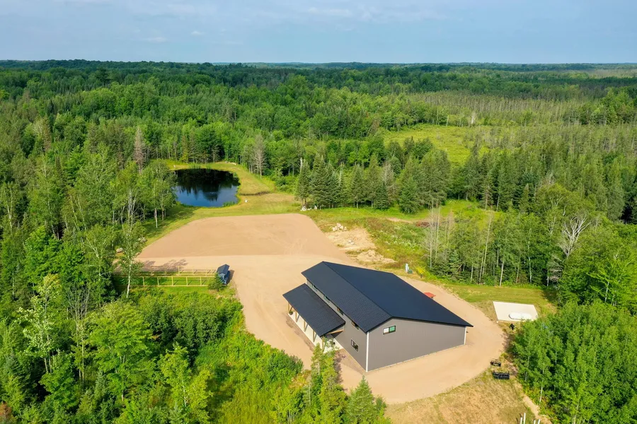 Customized 3,560 sq. ft. building with +/-158.08 acres located north of Medford. Living quarters with kitchen, full bath, laundry, living room and bedroom. 12x14 overhead door with 19' ceilings. 8x10 overhead door with 9' ceilings. Gated gravel driveway, fish pond, mowed trail systems, +/-7 tillable acres, food plots and creek flowing through property. Wooded habitat with ridge contours offers exceptional hunting opportunities. Enjoy kayaking and canoeing on the creek with access to Cronin Lake. 10x40 covered porch. Large parking lot with graveled building site for additional parking or building site for another building or home. The stove, refrigerator, washer and dryer are included in the sale price.
