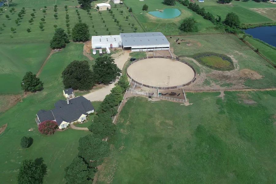 Taylor Cutting Horse Ranch located Northwest of Paris, Texas. Property has 9.9 acres of rolling fertilized pasture land with cross fencing for rotational grazing. The pastures are perfect for mares with foals or younger horses and each pasture has its own water source. Tall pines line the drive which stretch to a large round training pen and horse facility of 17,280 sq ft w fully equipped covered arena. There are 20 slide-door horse stalls, and a large stall for feed and tack. A 150 ft diameter round pen for training and cattle pens w chute and load out. The beautiful 5 3 faces East with 2,922 sqft of living with extra patios, separate kitchen. Training and boarding can be accomplished all year 'round. More land available if desired.