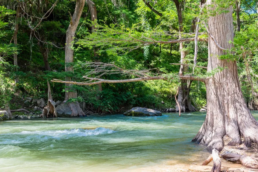 This ranch consists of 482 acres with over 2000 of Guadalupe River Frontage. The property has a nice gentle roll falling from the highway frontage down to the river. The landscapes consist of majestic oak trees and numerous other hardwood species. The Cypress trees on the river complete the properties flora appearance. The Head Quarters consist of two houses and 3 barns, surrounded by Trophy Oak Trees. Looking over a newly constructed 2 acre Lake. The property is high fenced on three sides with both native and exotic animals.