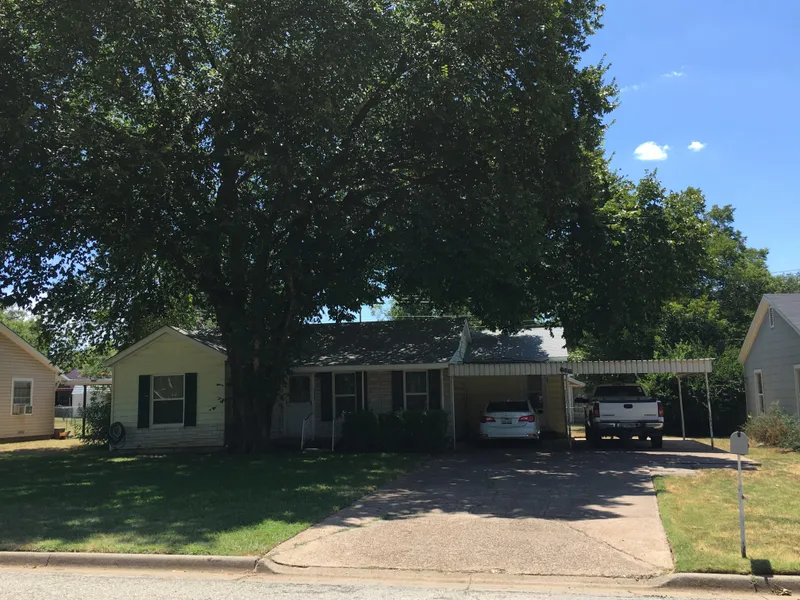 Charming two (2) bedroom, two (2) bathroom, two (2) car carport frame home with a gorgeous shade tree in the front yard; Quiet neighborhood conveniently located near Indiana Street, High School, Junior High School, and Pioneer Elementary School in Graham; Cute & airy front porch; Inviting knotty pine walls in the den, dining and kitchen areas; CH/A (electric air with gas heat); Open concept with a partial divider wall; Spacious kitchen/dining combination with a drop-in smooth surface electric range, lighted vent-a-hood, built-in dishwasher, stainless steel sink, garbage disposal and refrigerator (conveys); Separate utility room with full-size washer and dryer conveying to buyer; Formal living room with a craftsman style front door, carpet, and faux brick accent wall; The den has carpet flooring, a lighted ceiling fan, and knotty pine walls; Master bedroom has carpet, two closets (one is ...