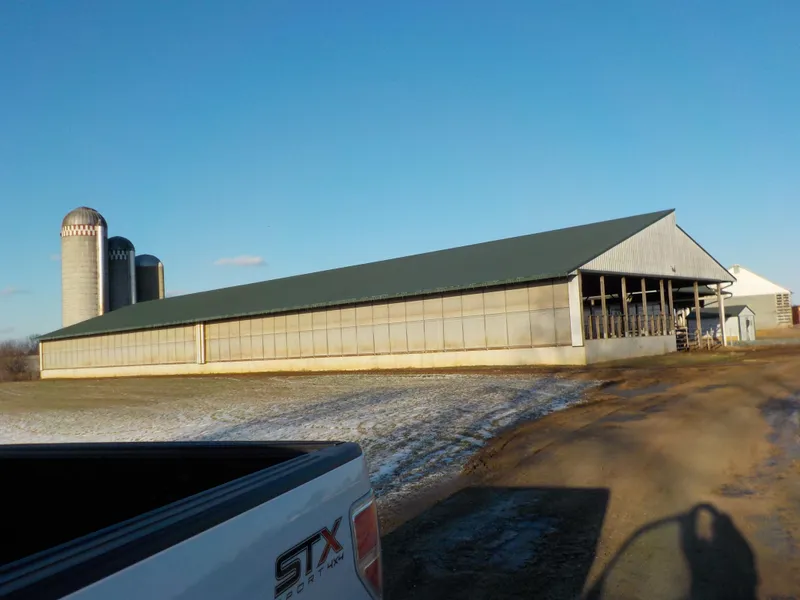 20 5 panel fans, 4 3 fans, 4 sturdy built dump waterers, small Nelson waterer, Ritchie waterer, 3 Mira Fount frost free waterers, gates & hardware, 2 sets PaulB headlocks, all sturdy built gates & hardware in use in the barns and milking areas, gas hot water heater in calf barn w/ 100 gallon supply tank.