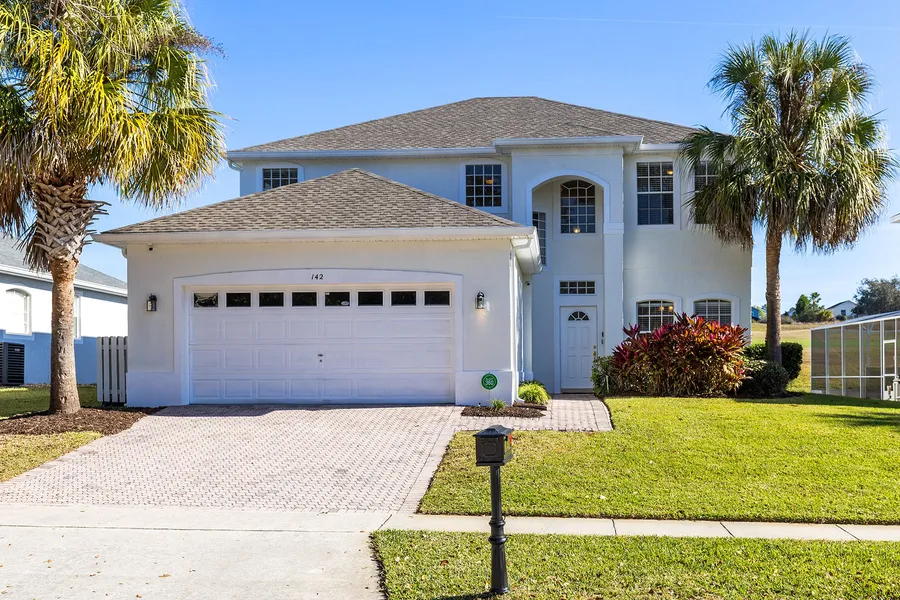 In a prime location in the desirable Highlands Reserve golf community in Davenport, this beautifully maintained single-family home offers an exceptional blend of lifestyle, comfort and income potential, highlighted by open golf-front views of the 16th fairway and green. Operating as a successful short-term rental and being sold fully furnished, the property is turnkey and well-suited for investors, second-home buyers or full-time residents alike. With low HOA fees and no CDD, this delightful community is tough to beat. The thoughtfully designed floor plan features a spacious primary suite on the ground floor, providing convenience and privacy, while the second level includes a second en-suite double bedroom, three additional bedrooms that share two full baths, and a versatile secondary living area that can easily be converted into a sixth bedroom, media room, or additional sleeping space to enhance rental income or accommodate larger families. The home has been tastefully updated throughout with durable LVP flooring and no carpet anywhere, creating a clean, modern feel that is stylish and low maintenance. The open living area and fully renovated kitchen serve as the heart of the home with updated cabinetry, quartz countertop, sleek finishes and new stainless-steel appliances, making it an ideal space for entertaining or everyday living. Adding to the home's appeal is a family-friendly games room in the garage with a pool table, offering additional entertainment space that is especially attractive to vacation guests. Recent improvements include a new roof and fresh exterior paint completed in 2025, newer air conditioner and resurfaced pool providing peace of mind and long-term value. Outdoors, the private pool is screened and heated for year-round enjoyment, creating a relaxing retreat with tranquil golf course views. The surrounding neighborhood offers a welcoming mix of vacation rentals and full-time residences, and the location is convenient to a wide array of shopping and restaurants, with all of Central Florida attractions just a short drive away, making this home a compelling opportunity in one of the area's popular golf communities.