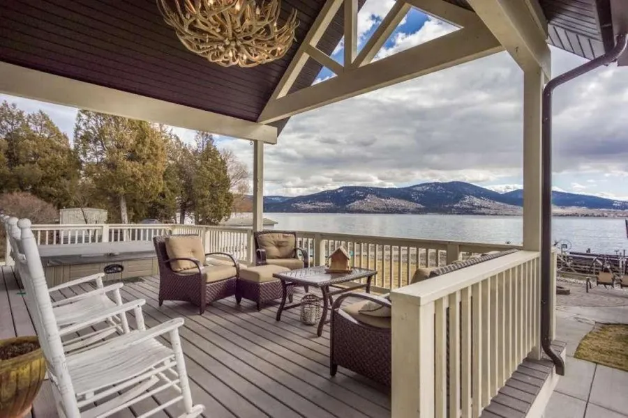 Completely remodeled lakefront home with a new guesthouse, boathouse, large dock with a lift station and over 111 feet of Flathead Lake shoreline. Lots of room to entertain with a lakeshore patio & fire pit, a huge covered deck with a hot tub and the entire property has been landscaped or paved for parking. Underground sprinkler system in place. The boathouse has a rail system and features a new 3/4 bathroom & sauna, along with lots of storage room, perfect for an outdoor kitchen. The log guesthouse is charming with slate tile and wood flooring. The main house has wood floors, a rock fireplace and a kitchen with custom cabinets and thick slab granite counters. Included with the 10+ acre property is a small cherry orchard.