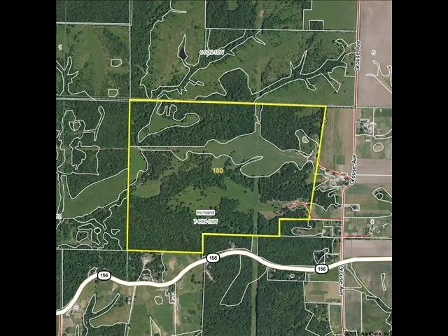 180 acres. 30 acres of pasture which can be tilled or put into foods plots. 150 acres of timber. A 40x80 building which half is used for the home and the rest is used for storage. The building is valued at $63,000 which makes the land valued at only $1,800 per acre. The ideal affordable hunting farm