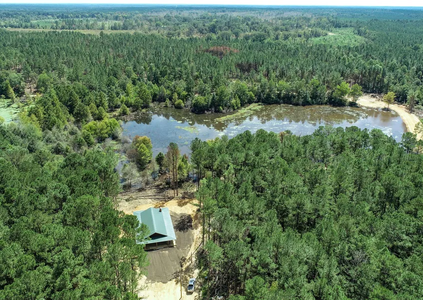 The cabin sits on a gorgeous ten-acre lake, but it has potential to be even larger. There are dams to the east that break it up into several smaller lakes. The entire body of water is about twenty acres providing a great water source for all kinds of wildlife. Enjoy fishing and boating all year round along with the added appeal for waterfowl and occasional duck hunting.