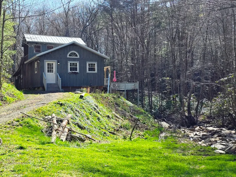 This property has it all! First a creek through property with covered bridge, open area, fruit trees, springs, 4-wheeler roads cut throughout the property. Lots of options for 175+ acres with multiple homesites. Small cabin overlooking the creek with deck. One bedroom, 1 bath-great for mountain getaway or rental investment. Property was cruised for timber in November 2021 with estimated value of 268k to 309k.