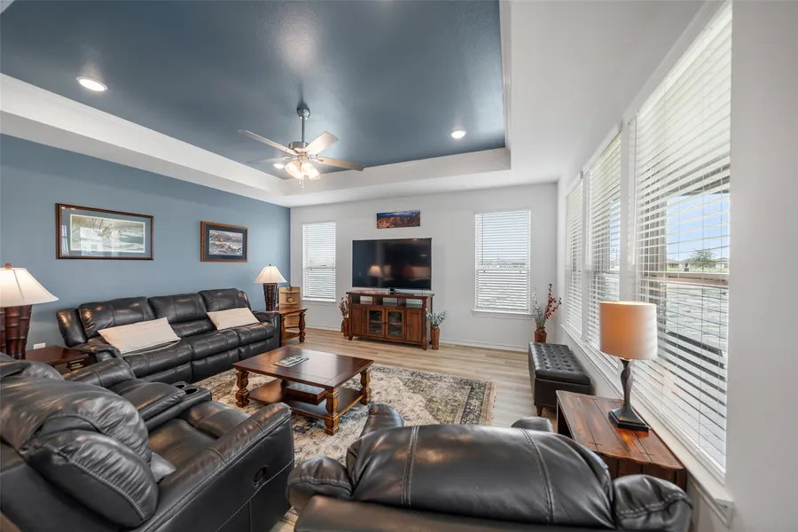 Don’t wait on new construction—this like-new home is move-in ready and perfectly positioned on a waterfront lot in the sought-after Del Webb Fulshear 55+ Active Adult community. Featuring the larger Echelon Renown floorplan, the home offers 3 bedrooms, 3 full baths, plus convenient guest half bath. Thoughtful upgrades abound, including ebony-stained alder cabinetry, Dekton Silestone countertops throughout, ceiling fans, black pendant lighting, extended garage, back gate access. The open-concept kitchen showcases stainless steel appliances, gas cooktop, upgraded backsplash, soft-close cabinets/drawers, walk-in pantry, oversized island, and seamless flow to the gathering areas. The primary suite includes an en-suite bath with walk-in shower and dual walk-in closets. Residents enjoy resort-style amenities including a clubhouse, fitness center, indoor lap pool, outdoor pool, putting green, s...