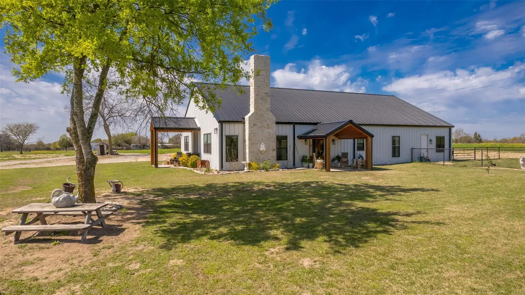 The Barndominium dreams are made of! Near Lake Fork, this gorgeous 3bed, 2bath home includes custom finishes & insulated garage on a 12-acre ranchette, at the end of a long driveway. Luxury abounds in the bright interior & soaring vaulted ceilings just past the grand double-door entrance. A welcoming stone fireplace anchors the living area's open floor plan. The magnificent wrap-around kitchen, with massive island, includes a farmhouse sink, granite countertops, elegant white cabinets, tasteful wood & brass accents, a massive walk-in pantry with custom shelving & imported Belgian sink. The vaulted primary bedroom comes with a spa-like bathroom & oversized walk-in closet with built-in drawers, custom shelving, recessed lights, & vanity table. Private 3rd bedroom has separate entrance, room to add kitchenette & lvg. Large laundry room includes custom craft & wrapping station. A 5-stall Bar...