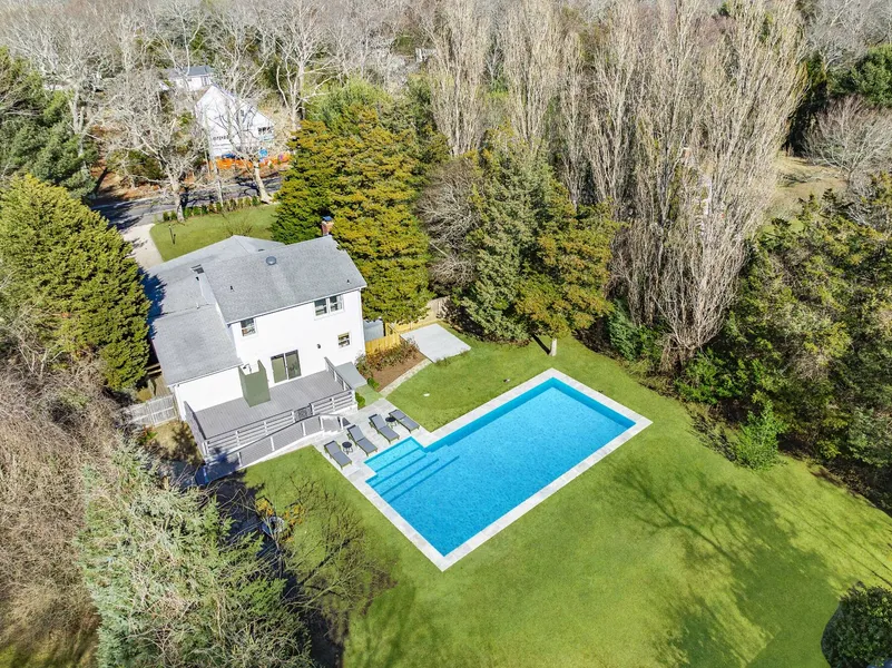 Discover this beautifully reimagined four-bedroom, three-and-a-half-bathroom traditional home, where thoughtful design and high-end upgrades create a truly stunning living experience. Step through the covered porch into the entry foyer, where newly installed and refinished oak flooring leads to a spacious den and an expansive great room that seamlessly combines the kitchen, dining, and sitting areas. The chef's kitchen impresses with Z Line appliances, quartz countertops, open shelving, and sleek modern cabinetry. The generously sized first-floor primary suite features a spa-like ensuite bath. The first-floor also consists of a private guest bedroom with an ensuite bath, along with a powder room with Concretti sink and a mudroom/laundry room, adding to the home's convenience. Upstairs, two spacious guest bedrooms, a full bath, and an office/bonus room provide flexibility for work or relaxation. The guest bathrooms showcase elegant tile work and Kingston Brass fixtures, while high-end lighting, including an Anthropologie chandelier in the primary suite, enhances the home's warmth and sophistication. The lower level offers a blank canvas with endless possibilities. Outside, ample decking leads to a beautifully positioned pool with a new patio, coping, and heater, creating the ultimate summer retreat. The property borders a sprawling 28+/- acre nature preserve, ensuring unparalleled privacy. Located just minutes from Gerard Drive, Accabonac Harbor, and the charming restaurants and coffee shops of Springs, this exceptional home is a rare find.