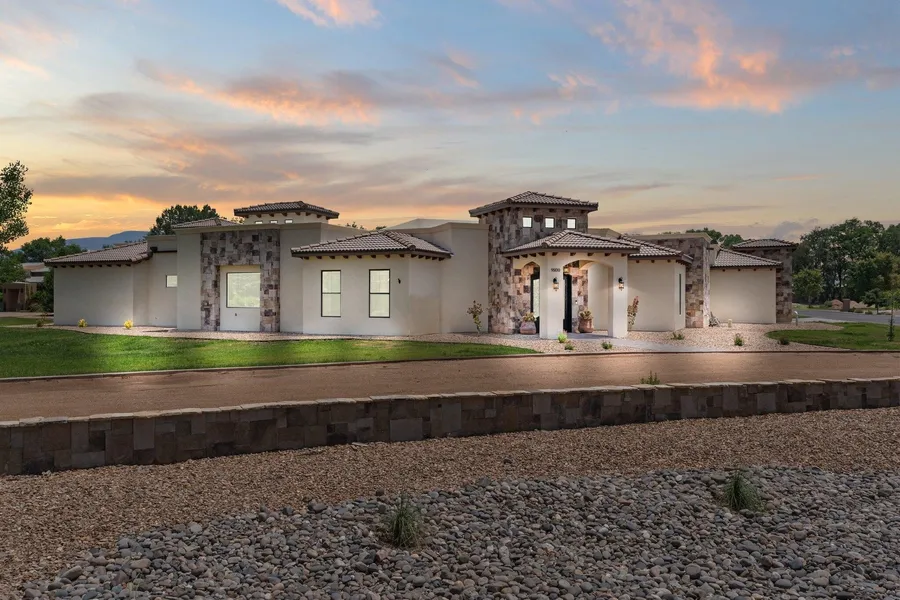 Luxurious Mediterranean style home by Rio Grande Construction, located behind the gates in the Bona Terra Farms community on a 1.16 acre property. This expansive home boasts 4,930sf with 5 bedrooms, 5.5 bathrooms, a home theater and 6 car garage with backyard access. Beautiful living area with hand carved trusses lining the ceiling, fireplace and built-in wet bar. Chefs kitchen with designer cabs, quartz countertops, upgraded appliances, double islands, pantry and dining space. Pour a glass of your favorite wine from the temperature controlled wine wall or a drink from the built-in bar with taps! Catch the latest movie in your home theater. Owners suite w/ spa bath! Great outdoor space with built-in kitchen, pool/hot tub, fire pit & a huge covered patio w/ tongue & groove ceiling.