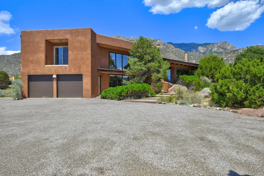 Excellent opportunity to own in SANDIA HEIGHTS! This 4-bdrm 31/2-bath home has so much to offer. Passive Solar. Nice fireplace(s) in the living room and formal dining room. Enjoy watching the tram from the kitchen that opens to the family room drenched in sunlight from the wall of windows. This room is the showstopper of this home - offering ABSOLUTELY STUNNING VIEWS of the SANDIAS, THE CREST, & CITY LIGHTS. Gourmet kitchen is equipped with Viking ranges/stoves (2), one installed in the immense granite island making it perfect for entertaining. The primary bedroom offers AMAZING VIEWS of the CITY LIGHTS & DOWNTOWN! Incredible outdoor space includes Outdoor Kitchen & Pretty water feature. Sellers conveying in ''as is'' condition. Priced per the recent appraisal. Bring your imagination