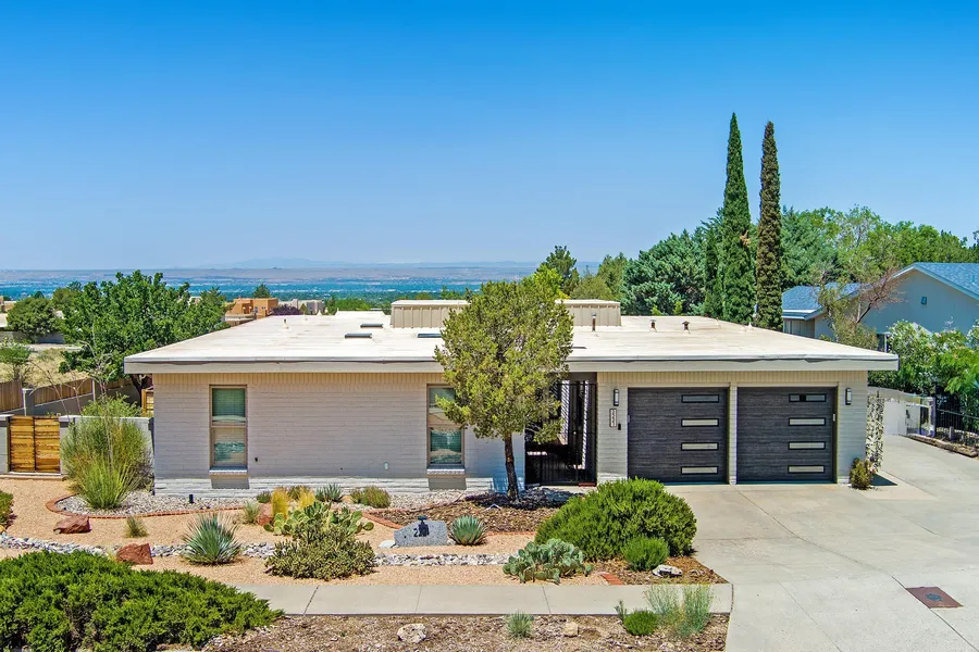 Foothills at it's finest and thoughtfully updated, this single story home has style. An inner courtyard greets you and is one on the many indoor/outdoor living spaces. Modern kitchen with an oversized eat at bar adds to the abundant counter space. The newer cabinets have glass fronts to show off your stemware. Walk-in pantry, and the butler's bar gives a peek into the courtyard, and all of this flows into the dining and living rooms. The second living space has a wall of windows to take in the well designed back yard, sunset & night views. 4 bedrooms & 2.5 baths, the primary suite has a large walk in closet, & double vanity. New Hvac including refrigerated ac & thermal windows in '19. Home is on .34 of an acre with only 1 neighbor, a park across the street, mountain views & nearby trails.