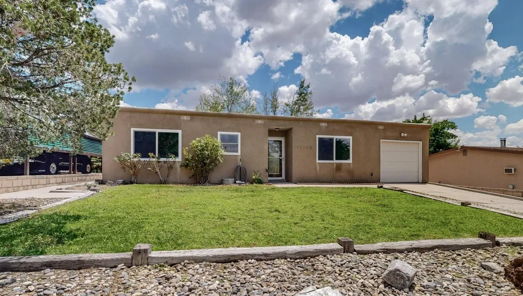 Beautifully updated air-conditioned home in the NE Heights! This 3 Bed, 2 Bath 1,291 sq. ft gem features an open floor plan with new waterproof laminate flooring, paint & carpeting throughout. The just remodeled Kitchen boasts new maple cabinetry with 36''tall uppers, crown molding, granite counter top sand stainless-steel gas range, dishwasher, microwave. AC & Water Heater were installed in 2022, furnace in 2016. The front yard has working sprinklers and was just re-seeded. The spacious backyard has an ample covered patio that is great for entertaining, two storage sheds and several garden spots ready for your green thumb!Conveniently located near parks, schools, and shopping!Owner is a licensed NM real estate broker.