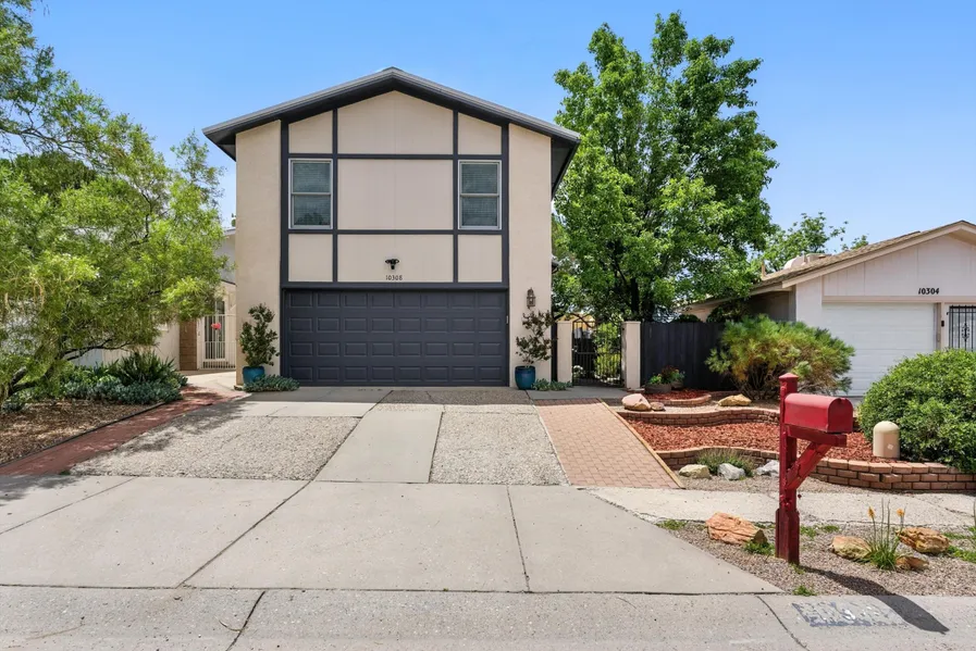 Welcome to this charming home in the Oso Grande neighborhood. This home features a spacious great room with soaring ceilings, a fireplace and lots of natural light. The kitchen has been renovated in the past with maple cabinets, solid surface counters along with stainless steel appliances. Upstairs you'll find a loft, and 2 more rooms including an oversized primary suite with vaulted ceilings & a wet bar. Enjoy the outdoors with mature trees and landscaping, patio area, and storage shed. Short walk to beautiful Oso Grande park & CNM campus. Very well kept, come see this move in ready home today.