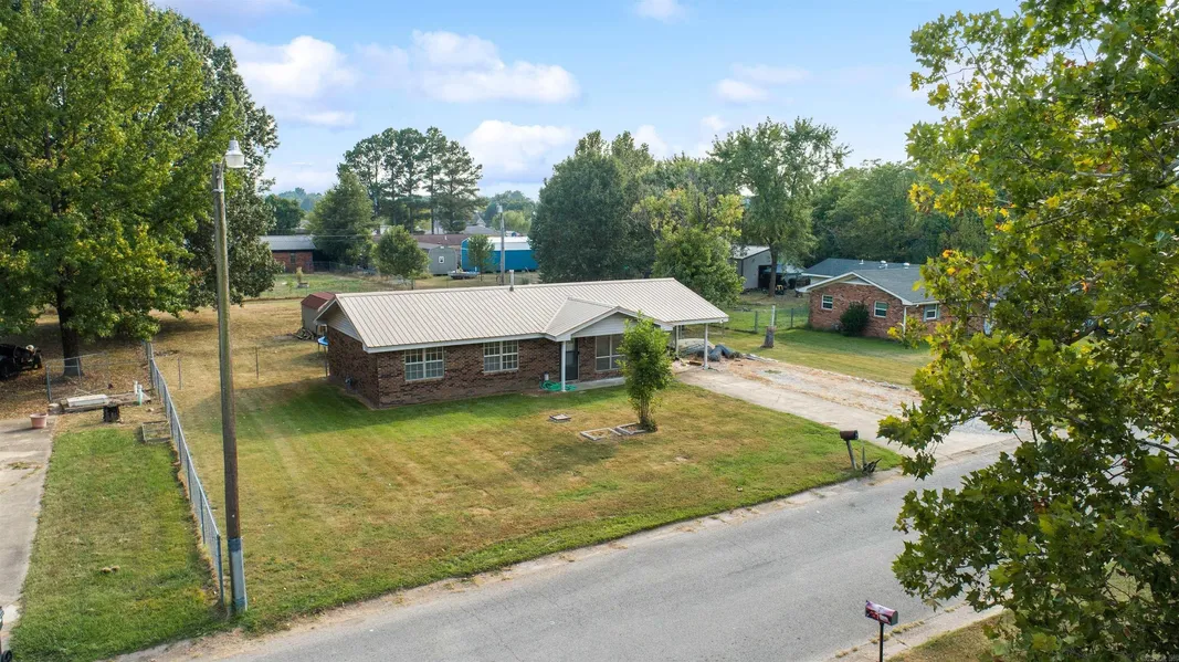 Discover the charm of this beautifully updated 3-bedroom, 1-bath all-brick home, featuring a durable metal roof and a fresh coat of paint throughout the house. With a modern heat and air unit just 1.5 years old, a brand-new stove, and spacious wood cabinets in the kitchen, this residence is perfect for comfortable living. Enjoy the large yard, soon to be enclosed with a chain link fence, and the added security of a storm cellar in the backyard. Additional highlights include a small storage shed, a large laundry room, and a convenient 1-car carport, making this an ideal starter home for families or first-time buyers.