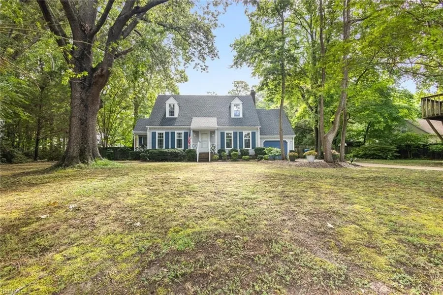 Beautiful Cape Cod home in the desirable Kings Grant Neighborhood. First floor bedroom and full bathroom with 2 additional bedrooms and full bathroom upstairs. The finished room over the garage can be a 4th bedroom/den or office. Updates include a NEW ROOF & HVAC as well as new appliances, new shower surrounds in both bathrooms and a new garage door opener! Wonderful floor plan with galley kitchen, large laundry room including ample storage, separate dining area and large living room. Step outside onto a large deck, overlooking a large yard with in-ground pool making it excellent for entertaining. Beautifully manicured 1/2 acre lot with mature trees including a tree house for kids. Short distance to Kingston Elementary & bus stop close by! Must see this one today, call to schedule a tour.