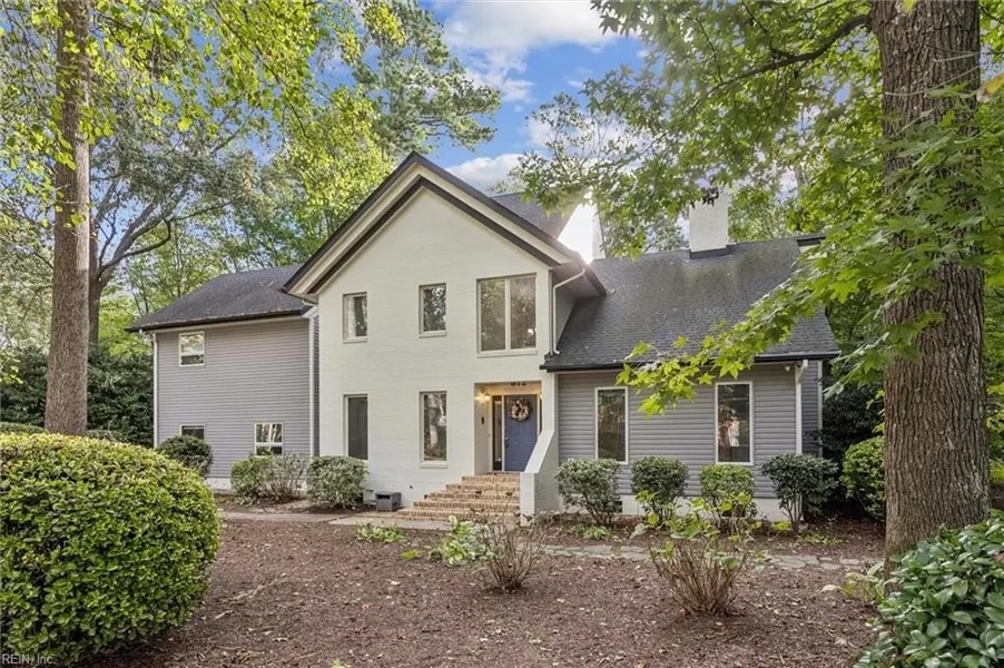 Virginia Beach at its finest. Bright and Open Transitional, Contemporary Two-Story home with soaring ceilings and sky lights on approx. 3/4 acre wooded lot on a beautiful street in the Royal Grant/Kings Grant neighborhood. May be plenty of room for a pool (see survey in docs). Living and Family Rooms with cathedral ceiling and double-sided 2.5 story fireplace. Luxurious Primary bedroom also has dramatic tall ceilings, balcony, sitting area, lots of windows for light, new shower and more. Large kitchen with breakfast area, large pantry and nearby laundry room. This home marries a beautiful contemporary home to a large wooded lot. Seller to provide buyer with a 1-year 2-10 Home Warranty, call agent for details.