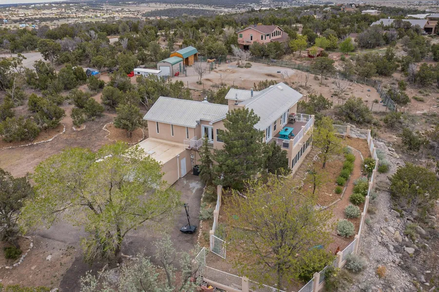 Welcome home to your own slice of New Mexico paradise! Sitting up high in thunder mountain, you can take in the gorgeous views that surround from the upper living area and balcony. This home has many recent updates making it turn key for the new owner. With 4 bedrooms, 3 baths, huge garage, and 1.78 acres, there's plenty of room for everyone. Easy commute to Albuquerque or Santa Fe. Schedule your showing today before it's gone! Virtual tour available.