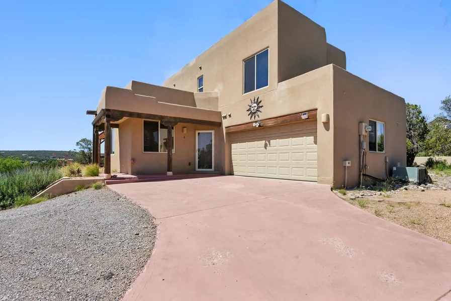 Bright and happy two-story custom home in the East Mountains has so much to offer! Located at the end of a cul-de-sac, the property's exterior features include a private gated entry, a concrete driveway, a deck with breathtaking views of the mountains and meadows. Interior features include a gas log fireplace, exposed beam vigas, tile flooring and countertops. The windows are situated for stunning panorama and let in tons of natural light. The three bedrooms are located on the second level. The primary bedroom features a private balcony. The primary bath has a large garden tub and separate shower. The HOA maintains the roads and does snow removal. Homeowners and their guests have exclusive access to hiking trails and open space areas.