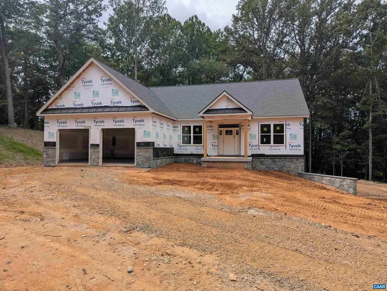 No HOA! 1 LEVEL LIVING home - 3 BR / 2 BA offers spacious kitchen with granite counters, family room with gas fireplace, 9 ft ceilings. Full unfinished walkout basement plumbed for additional full bath with framing and electrical in place for a family room, 4th bedroom and an office. 2 car garage. Generator ready with transfer switch already installed. Gas tankless water heater. Lot 4A is mostly wooded with seasonal Blue Ridge. Underground Power installed, 15 minutes to Hollymead Town Center, mild Protective Covenants in place. Some pictures are of Models built on other parcels, Lot pictures are of Lot 4A. Taxes are estimated. Completion scheduled for Late October 2025 . Owner/Agent.