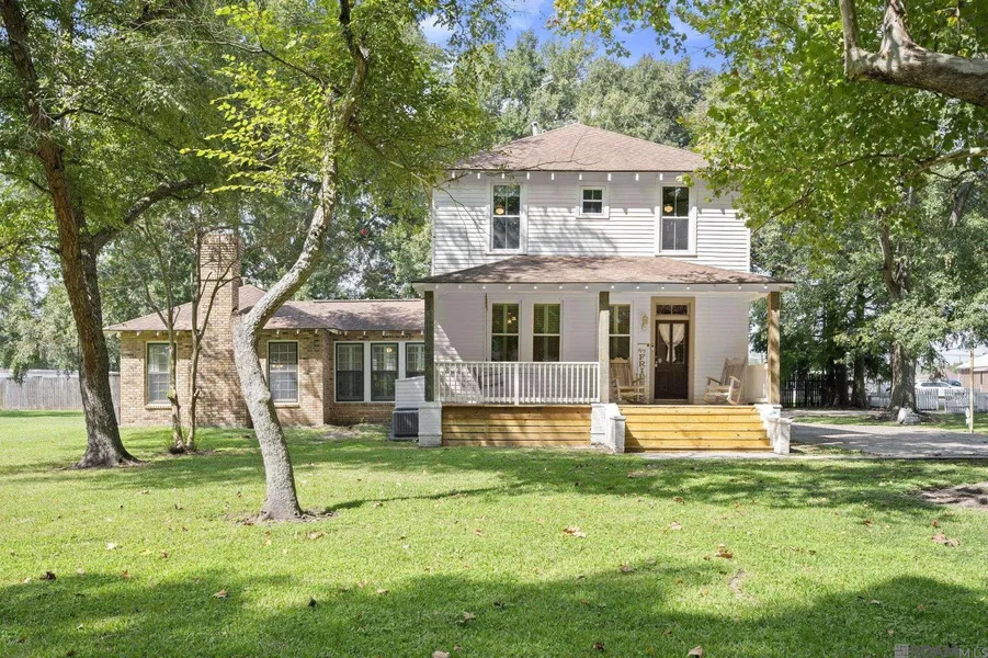 Own a captivating piece of history with the meticulously maintained "Bird House," a classic Sears home built from white cypress. Originally part of a vast 26-acre tract reaching the Mississippi River, this enchanting home now sits on a manageable 1.24 acres in the heart of Addis. Thoughtful additions have created a spacious, airy, and light-filled floor plan perfect for modern living and entertaining. This versatile home features three bedrooms and two full baths, with the exciting potential for a fourth bedroom downstairs. Multiple flexible areas throughout the home offer endless possibilities, whether you envision a home office, hobby room, or playroom. The kitchen, dining, and den flow seamlessly together, featuring warm wood accents and high ceilings. The gourmet kitchen includes a large island, pantry, cypress cabinets, and butcher block counters, and opens to a covered courtyard with brick walkways. Cozy up in the oversized den with its masonry, wood-burning fireplace and floor-to-ceiling windows with plantation shutters. Upstairs, alongside the three bedrooms, a luxurious bath awaits with a high-end steam whirlpool-sauna unit that connects to your iPad. Recent upgrades include fresh interior and exterior paint and a refreshed porch. The property offers a tranquil outdoor oasis, with mature trees and lots of shade. Practical amenities include a double garage, a circular entry driveway, a workshop and a metal storage building. Sustainable living is also made possible with the inclusion of solar panels. Come see this captivating piece of history today and make it your own. Schedule a private tour to discover all the possibilities this charming home has to offer!