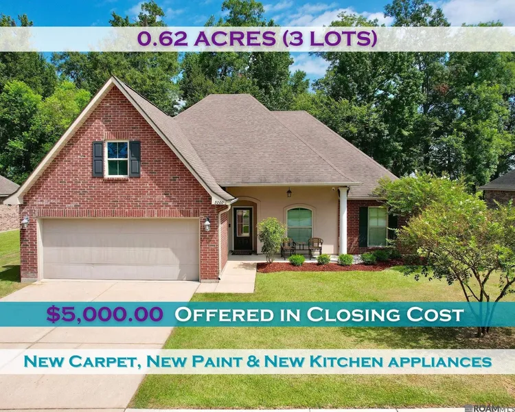 **3 LOTS** Welcome home to this charming 4 bedroom, 2 bath residence nestled on a generous 0.62-acre lot in the heart of Brusly, Louisiana. A rare find that combines space, comfort, and countryside appeal, yet just minutes from the area's amenities. Step inside to a warm and inviting floor plan featuring a spacious living area ideal for family gatherings. Natural light flows through large windows, illuminating the open layout and highlighting tasteful finishes. The kitchen offers ample cabinetry, counter space, and room for casual dining or entertaining. Sleek black stainless and stainless steel appliances and the refrigerator will remain. The master bedroom provides a private retreat with its own full bath. Three additional bedrooms are well-sized, perfect for family, guests, a home office, or hobbies. A second full bathroom serves the rest of the home, thoughtfully located for convenience. Outside, the expansive 0.62-acre lot gives you plenty of room to spread out — imagine relaxing on the patio, gardening, or hosting cook-outs with friends. Mature trees, lush landscaping, and added privacy make the outdoor space feel like your own private oasis. Let the kids play in their own treehouse and enjoy nature. Additional highlights include a great neighborhood and neighborhood pond. Whether you’re seeking quiet country living or space for your growing family, this property delivers.