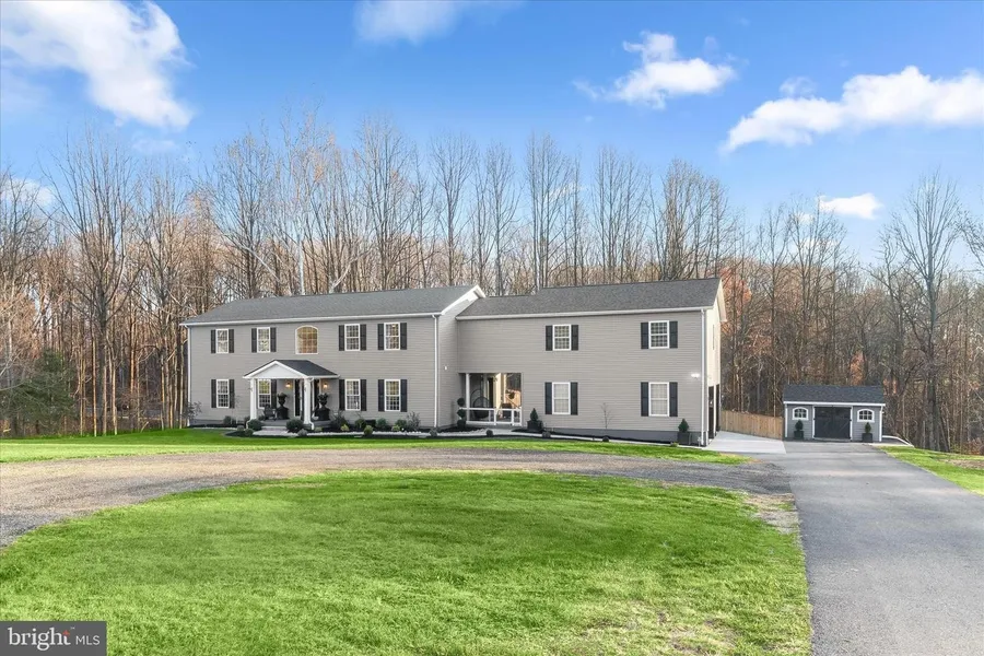 This remarkably renovated home is tucked away on a sprawling 3.05 acres, offering privacy and tranquility. Thoughtfully redesigned with no expense spared, it features a potential guest home or fifth bedroom in the generous space added above the garage, complete with a full kitchen, living area, bedroom, full bath, and storage. The possibilities are endless. The gorgeous kitchen renovation includes an oversized center island, quartz counters, decorative tile backsplash, exquisite lighting, smart stainless steel appliances, a double oven, a pantry, and a casual dining area. From the kitchen, enjoy access to a lovely breezeway and an outstanding outdoor retreat that includes a newly added deck, patio, pool, hot tub, entertainment area, and firepit. Summer barbecues will be unforgettable. Inside, the spacious family room offers the perfect place to relax, complemented by a large formal dining room ideal for gatherings and a convenient home office. A tastefully updated powder room completes the main level. Upstairs, the expansive primary suite features a sitting area, ceiling fan, and a renovated walk-in closet. The luxury primary bath is beautifully appointed with brand new flooring, separate vanities, a soaking tub, and a shower. The bedroom level also includes a laundry room with a Samsung smart washer and dryer, along with two generously sized bedrooms that offer plush carpeting, ceiling fans, walk-in closets, and an additional full bath. The impressive lower level provides a fourth bedroom, a full bath with dual shower heads, a recreation room, and an exercise room, with walkout access to the inviting patio. Enjoy swimming in the pool, roasting marshmallows at the fire pit, or relaxing in the hot tub. Additional updates include a fully fenced backyard, custom shed, breezeway, two car garage, home security cameras, washer, dryer, and an electric dog fence in the front yard. This home truly has it all.