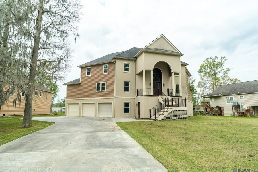 Nestled in the private, gated community of Canary Island, this stunning multilevel home offers the perfect blend of privacy, waterfront access, and convenience. Situated on a spacious lot, this 4 bed, 4 and half bath, residence boasts an oversized three-car garage, a large climate controlled enclosed flex space with a full bath on the bottom floor, and an elevator shaft currently equipped with a utility lift. The thoughtfully designed layout includes two master suites, a living room, and a kitchen/dining area on the second floor, while the third floor features two guest bedrooms and a massive recreation room. The beautiful kitchen features staggered raised panel wood cabinetry, an eat-at island bar, 3 cm granite countertops with an undermount sink, glass cooktop, double wall oven, microwave, porcelain tile floors, and a spacious walk-in pantry. The living room has a wall of windows overlooking the river and ceiling speakers. Both master suites showcase beautiful wood floors, walk-in closets with built-in shelving and drawers, and en-suite baths equipped with double vanity cabinets, granite countertops, picture frame mirrors, soaker tubs, and custom tile showers with rimless glass. Each suite also has its own French door access to the back balcony. Additional features include ceiling speakers throughout the home and porches, quality wood windows, crown molding, oil-rubbed bronze fixtures and hardware, stylish lighting fixtures, ceiling fans, recessed lighting, and elegant window treatments. Outside, you’ll find expansive porches and balconies with tile flooring and metal railings, 4 HVAC systems, gutters, and more. The climate-controlled flex space on the bottom floor offers endless possibilities. It can be used as a theater, office, workshop, or converted into a screened-in area for covered entertaining. This home is an incredible value, offering access to Louisiana’s scenic rivers, bayous, Lake Pontchartrain, and the Gulf.