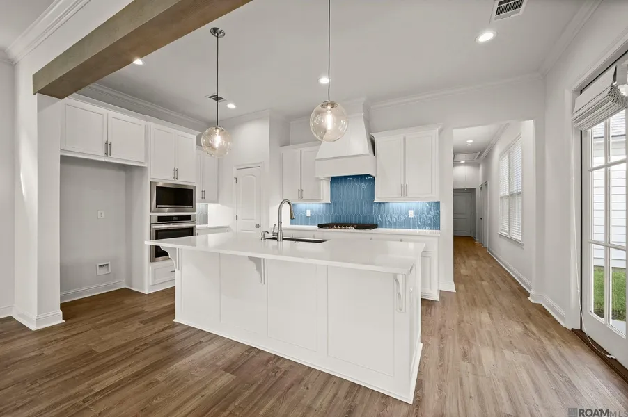 Stunning Newport floorplan by Level Homes, ready now in The Settlement at Live Oak!! The Newport is a two story home with four beds and three full baths and over 2200 sq feet of living space. Enter this spacious home from the large and inviting front porch into the open living, kitchen and dining. The gourmet kitchen is separated from the living room by a stained cypress beam and features custom painted cabinets with under cabinet lighting and 5" hardware pulls, 3cm Organic White quartz countertops and a custom backsplash, large center island with sink and overhanging pendant lights, stainless appliances including a gas cooktop with a single wall oven and built in microwave and a large walk in pantry. There are double doors off of the kitchen that take you out to the large covered side patio which will be plumbed for a gas grill! The master suite is located privately off of the rear of the home with a spa like bath featuring dual vanities with Organic White quartz countertops, custom framed mirrors, separate soaking tub and custom built tiled shower with a seamless shower door. There is an additional bedroom, full bath and a mudroom with space for an "optional" built in mud bench located off of the garage entry. The beautiful staircase with stained wood treads, painted risers and iron balusters is located in the formal dining and will lead you upstairs where you will find two bedrooms, a full bath and loft! The yard is professionally landscaped, full sodded and the rear yard is fenced. The Settlement at Live Oak offers beautiful homesites in the heart of Thibodaux along Bayou Lafourche and features an abundance of green spaces, a large recreational lake, luxurious community pool and pavilion, scenic ponds, local shopping, neighborhood dining and more! Other lots/plans available.