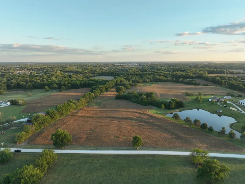 The land features gently rolling terrain, providing several excellent building sites, whether you envision a private residence, a business venture, or a mix of both. The property offers stunning panoramic views of the surrounding landscape, including a neighboring lake, rolling timber, and expansive agricultural fields, creating an attractive backdrop for future development