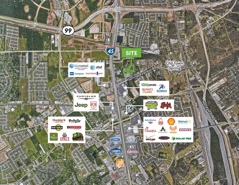 - Located between I-45 and Old Town Spring, mile east of I-45 North