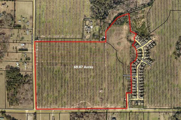69.47 Acre Development Tract on Hwy 42 & Rum Road in Byron, GA. The tract is adjacent to the New Haven Subdivision. (See attached plat of the proposed lots for the New Haven Subdivision.) $25,000 per acre