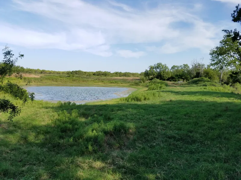 HUNTING: Excellent Dove hunting around the two centrally located ponds that are supplemented by the electric service water well. There are open area food plots surrounding the ponds. White wing, Eurasian and collard dove are common here. Day hunt leases could provide very good income for the owner. This area is known for its excellent bird hunting and easy to get to. There are numerous whitetails in the area. The owner states he's seen 50 whitetail at one time. Also, large groups of wild turkey have been seen as well as hogs. The northern 60% of the ranch is heavily wooded with primarily mesquite trees and thick native grasses, which make a perfect bedding area and haven for wildlife. The western edge of the ranch borders a seasonal creek.