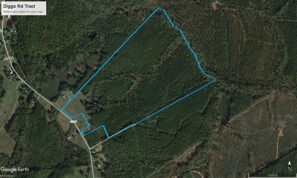 The Diggs Road Tract is located in eastern Anson County, NC . The property is approximately 92 acres and has +/-360 feet of road frontage on Diggs Road. The property contains approximately 65 acres of planted loblolly pine established in 1999. The timber has been well managed and is currently ready for a thinning harvest.