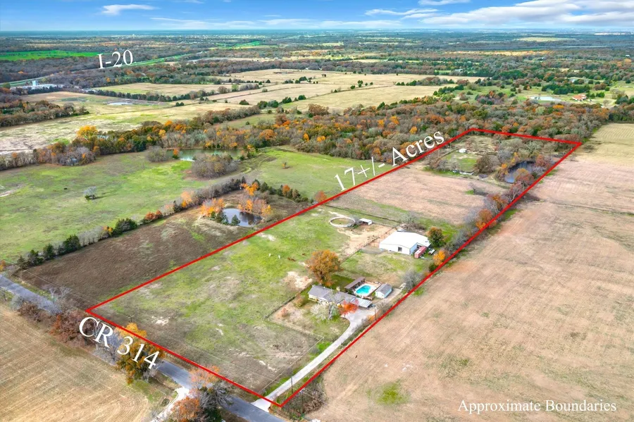 Discover this charming ranch nestled on 17 acres, just 1 mile from I-20 and a short 35-mile drive from Dallas. This 3-bed, 2-bath brick home radiates charm with hardwood floors, a renovated kitchen featuring stainless appliances, and beautifully updated bathrooms. For horse enthusiasts, the professionally built round pen, a 4,500 sq ft barn with four stalls, pipe pens, and horse runs provide top-notch facilities. An expansive outdoor arena measuring approximately 150 ft x 250 ft offers ample space for various equestrian pursuits. Abundant Coastal adds to the allure, providing excellent grazing and hay production. The property boasts a detached single-car garage or workshop and a 2-car carport, adding both functionality and convenience to this idyllic ranch setting. This 17-acre retreat seamlessly combines countryside tranquility with easy access to major highwaysa perfect haven for those seeking a serene yet accessible lifestyle.