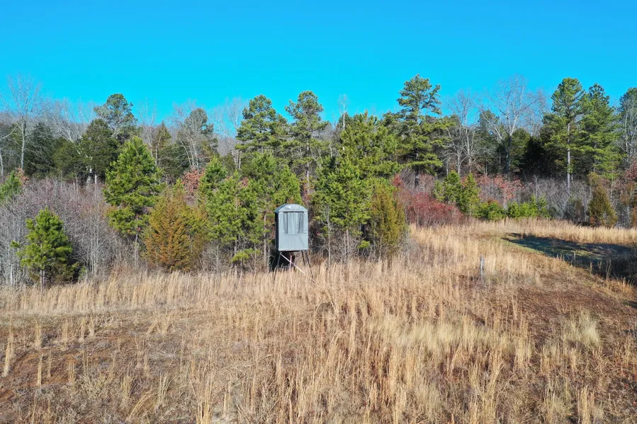 - Diverse habitat including open hardwoods, evergreen thickets, clearings for food plots, and a rocky creek