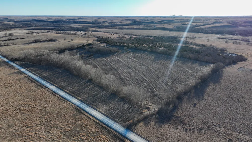 This 39 +/- acre property is located in western Jackson County, Kansas. The property is full of diversity with timbered draws, thickets, warm-season grasses, and crop production acres! The property has 20 +/- tillable base acres actively in production primarily consisting of Class III Martin silty clay loam soils. The tillable acres have 3 to 7 percent slopes with well-kept terraces and field edges. The tillable fields have an NCCPI overall weighted average of 50. The remaining 19 +/- native grass acres are loaded with cover including densely wooded draws, cedar, and dogwood thickets, and tall warm-season native grasses. The property also has a wet-weather creek lined with giant cottonwood trees.