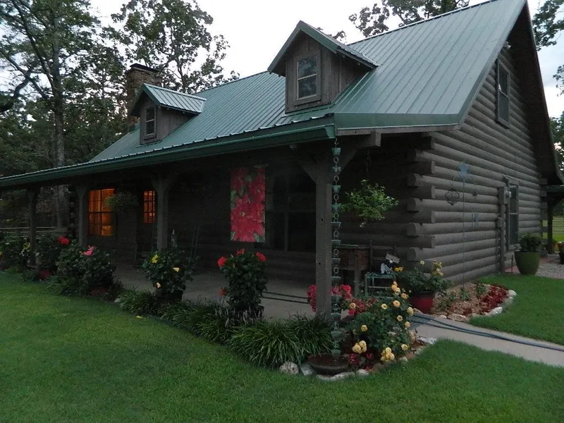 Improvements: Great access with paved road frontage on 271, home is on back of ranch down private gravel drive, limitless water usage from large capacity water wells, electricity, large fully stocked lakes, 3 Bed/ 2 bath Log home with metal roof, barns, hay barn.