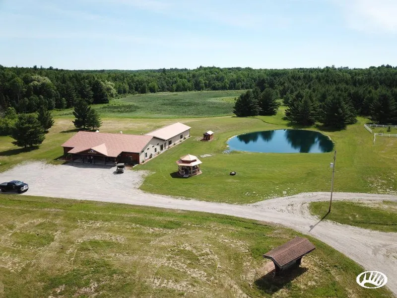 In the real estate industry, the term Hunter’s Paradise is probably unwarranted on most occasions. This is not one of those occasions! As land specialists, we are fortunate to walk many incredible pieces of ground but rarely do we find parcels that we consider “Grand Slam Properties”, which means you can successfully trap, fish, hunt (deer, bear, turkey, small game) and hunt waterfowl all on the same parcel of ground. This is that property! The great diversity of this parcel lends itself to holding and maintaining great populations of deer, bear, turkey, woodcock, grouse, otter, muskrats, beaver, wood ducks, mallards, hybrid bluegills, bass and trout. Nearly 30 water acres are spread out conveniently throughout the tract which creates great habitat and travel corridors for the land bearing critters. The location of water features allows the duck hunter and trapper the ability not to over hunt one hole over another. Diverse timber, natural browse and natural grasses provide healthy bedding and reproductive habitat for the deer herd. In addition, nearly 20 acres of food plots and fields are strategically placed in order to supplement the wildlife forage. An established trail system leads you to all corners of the property as well as the multiple elevated deer blinds including one double-decker complete with heater, couches and a urinal! Also included on the grounds is a secluded hunters cabin and a covered bridge. If the property isn’t enough, the living accommodations are equally impressive. As you drive through the gates you will notice the nearly 6,000 square foot lodge which comfortably sleeps 20 people. The spacious, open floor plan is conducive to large family gatherings, hunt camps or even catered events. Two large, well-built pole barns sit conveniently behind the lodge and overlooking a pond that allows for all of your equipment storage. In its entirety, this is a property that checks all the boxes in regards to someone looking for a complete outdoor lifestyle. Please give us a call for your own personal tour.