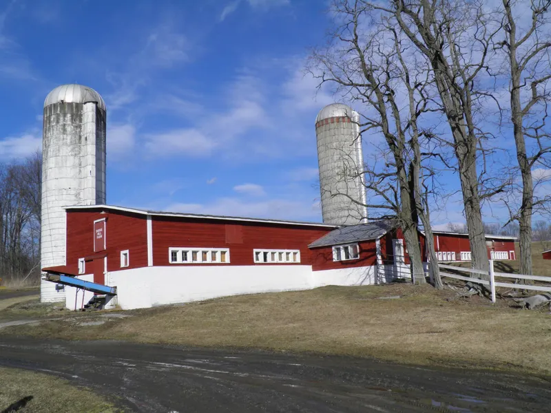 New York land with farm for Sale: This region of the Hudson Valley, between the Adirondacks and the Green Mountains of Vermont is a beautiful place to live, work and play. The owners of this approximate 250 acre dairy farm made their living off this land and are now hoping to enjoy their latter years with less work and more play. Without a new generation to take over the farm they found it necessary to place it on the market. A 60 stanchion barn in the southeast corner of the property was the hub of the operation. The adjacent 3 bedroom, 1300 sf farm house can be purchased as well but is not included as part of this listing. An assortment of outbuildings surround the barn including a 37' x 120' pole barn used to store equipment. The loft of the barn will hold up to 4,000 bales of hay. A spring fed well, adjacent to the house has always been a reliable source of water for the farm. There are roughly 100 tillable acres. It is good corn ground. Pasture accounts for another 80 acres and the remaining 70 is wooded which was thinned within the last 10 years. The acreage easily supported a dairy farm of 60 cows.