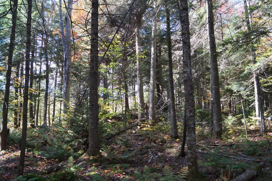 The forest generally has three stand types: 10 acres of spruce-fir sawtimber in the northwest corner of the property, 27 acres of mixedwood poles and sawtimber and are 10 acres of northern hardwood poles and sawtimber. Overall, the forest appears well-managed and adequately stocked. The last thinning was in 1996, removing select trees of varying ages.