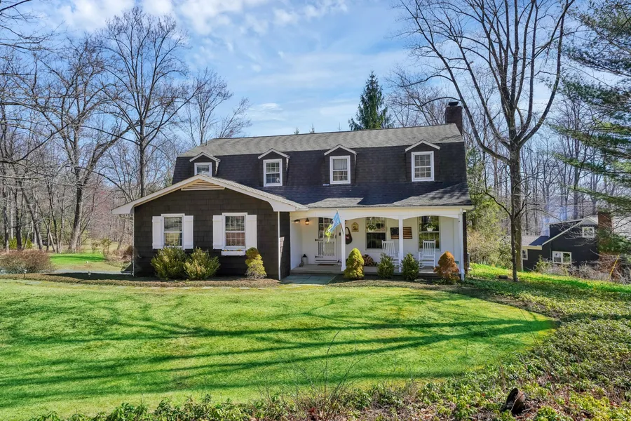 Welcome to this charming four bedroom, two full and one half bath Dutch Colonial, located in the desirable Dogwood Acres section of Chester. Stroll up the winding bluestone path to the cheery front porch of this newly painted home. Inside, you will find a comfortable living room with wood-beamed ceiling, built-in bookshelves, large picture window and an oversized wood-burning fireplace with wood mantle and brick hearth, perfect for enjoyable gatherings. The kitchen has a large pantry & spacious, sunny breakfast room. The first floor also boasts a large den/office, right next to the full bath, making first floor living a real possibility. A powder room and mud room, leading to a large composite deck, round out the first floor. Upstairs, you'll find a spacious primary bedroom with walk-in-closet and access to the Jack and Jill bathroom, with separate commode for this room. Three other bedrooms, one with access to the other side of the Jack and Jill bath with private commode, complete the second level. The unfinished basement is plumbed for a full bath and has an extra room perfect to create a wine cellar or use for additional storage. The deep, two car garage is oversized with storage/workshop space on both sides. With hardwood floors throughout the home, and many recent updates, including new paint inside and out, new second level bathroom floor, newer deck, and upgrades to the infrastructure, including newer gutters, hot water heater, well pump and sump pump, this home is a wonderful opportunity to join the Chester community.
