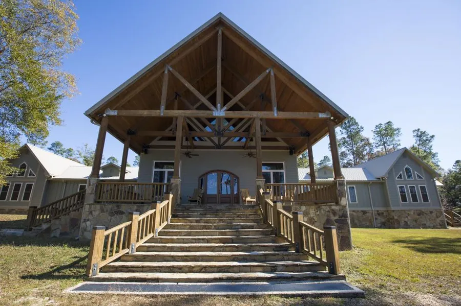 This income producing hunting, recreational, and timber investment with lakefront lodge is an outdoorsman's dream. The large lodge is ideal for personal, commercial, or corporate use. It overlooks a 5 acre stocked fishing lake with pier, with 12 bedrooms, 6 baths, chef's kitchen with stainless commercial grade appliances, commercial ice machine, walk in pantry, 2 laundry rooms with 2 washers/dryers each, master suite with private patio and hot tub, huge great room with stone hearth fireplace, 20 ft bar with beer and wine chillers, game area, 5 zone HVAC, 3 tankless hot water heaters and more... Other improvements include a large equipment shed and workshop with game cleaning area, walk in cooler, and covered parking for 2 RVs. Timber consists of varying ages and classes of well managed longleaf and loblolly pine and mature hardwood. Along with the income potential from the lodge and timb...
