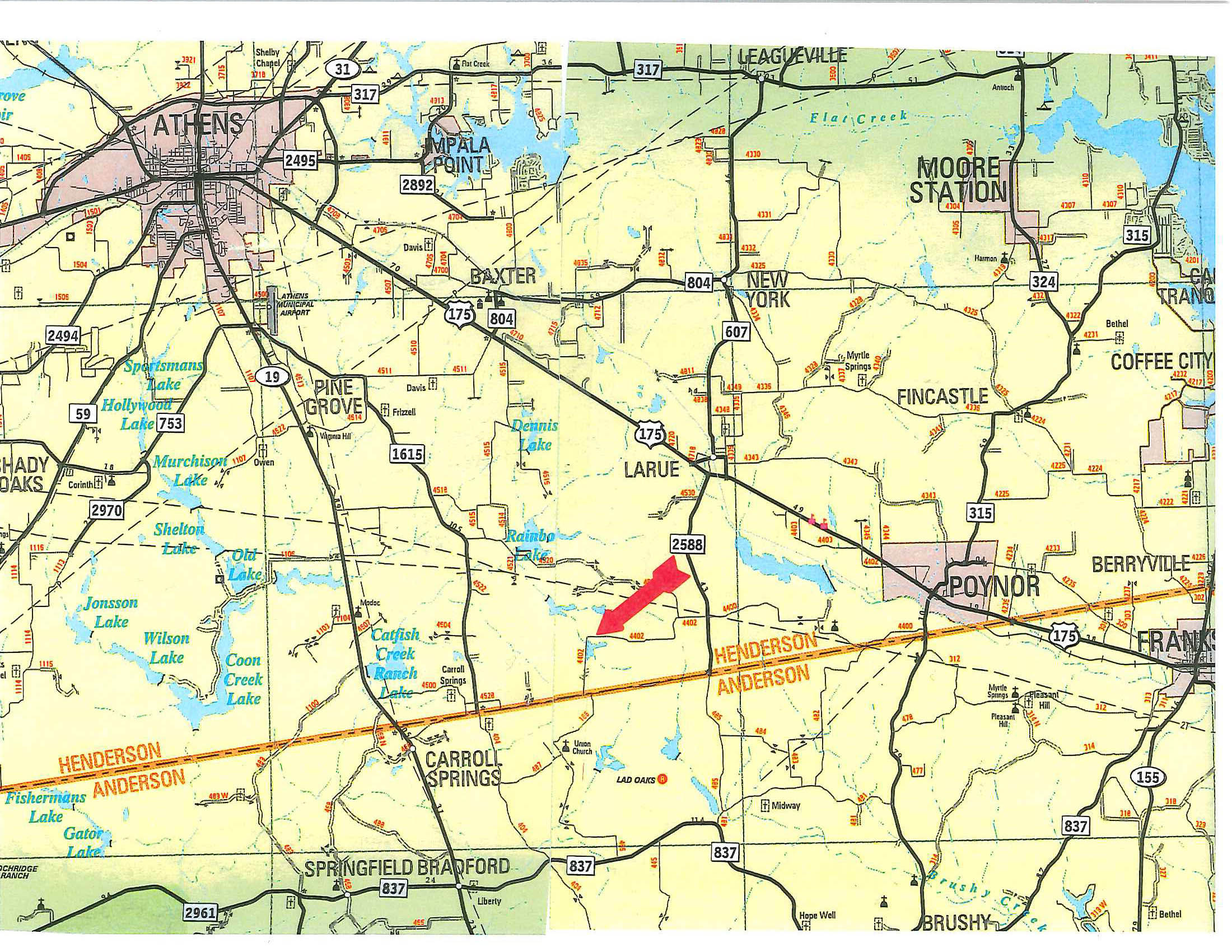 DIRECTIONS: FROM ATHENS - HWY 19 FROM SOUTH LOOP 7 ABOUT 1 MILE TO FM 1615. LEFT FOR 10 MILES TO CR 4528. LEFT 2.4 MILES, LEFT ON CR 4402 FOR 1.3 MILES - ON LEFT