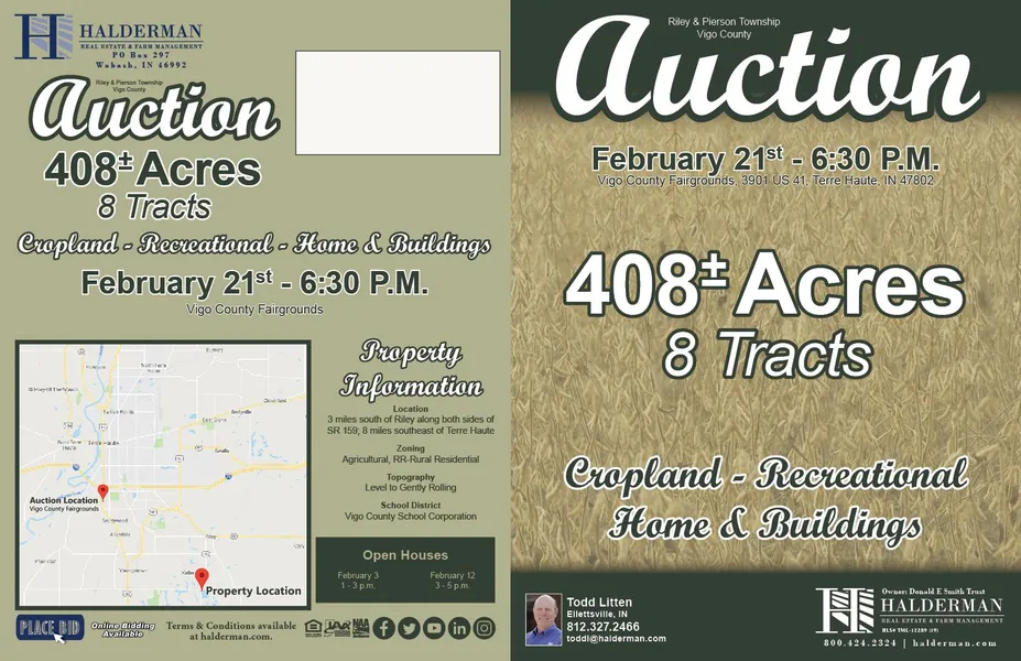 Legal Description Approximately 408.32 acres in part of the SW 1/4 of Section 33, T11N, R8W, Riley Twp. and in parts of Section 3, 4, & 5, T10N, R8W, (Pierson Twp.), Vigo County, IN