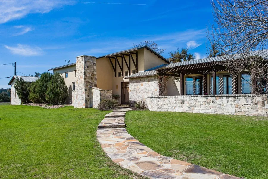 The sophisticated 3 bedroom - 2.5 bath custom home was remodeled from the slab up using wood and rock from the ranch. The open design allows ease of flow throughout the home. The kitchen boasts a Wolf gas stove/double ovens and Subzero Fridge. Large master suite Master suite. The master bath has a large walk through shower, and lots of custom wood trim. High ceilings of wood and tin are throughout the house. The nice outdoor living area and kitchen are a great place to spend the evenings. The Spanish style courtyard leads to two guest quarters that could also be used for and office or studio. There is also a large three car garage for all your toys.