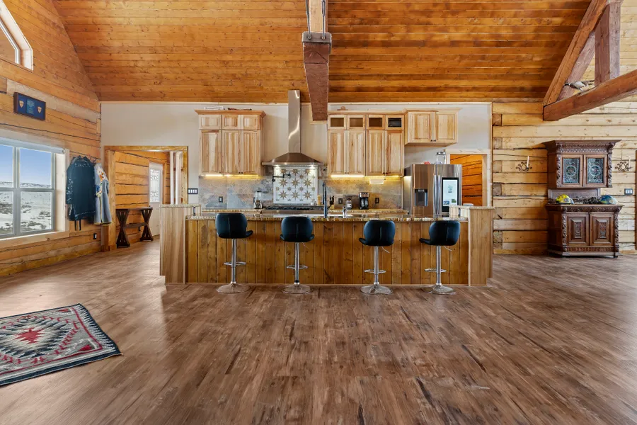 Motivated seller, bring offers! Double M Estate is a large custom mountain home with a perfect blend of craftsmanship and functionality. Just 3 miles off Hwy. High quality materials have been utilized throughout the building process to withstand the test of time. Open floor plan with views from every room. Massive rock fireplace created with materials from the site. Kitchen has custom cabinets, counters, 48" gas range, 16' island and walkin pantry. Owner suite on main floor has bathroom with a jacuzzi tub and walk in shower with sauna. Laundry room and guest bath located on main floor. Wrap around decking with several access doors. Downstairs has two large bedrooms with adjacent bathroom, great room, archery room and control room. Hydronic system for downstairs and insulated concrete forms for extra ease in heating. 2-200 amp electrical service panels for home. Rv hookup in shop. Surface water right is permitted and catch pond expansion approved. Please contact agent for further information regarding the special features of the home. Seller has operated a craft beer business out of the shop and wholesaled to local establishments. Craft beer business and brew equipment may be available at an additional price. One of listing agents must be present when property is being shown. There are too many extra features to list. Seller/ builder is in process of finish carpentry and site grading, (weather permitting).