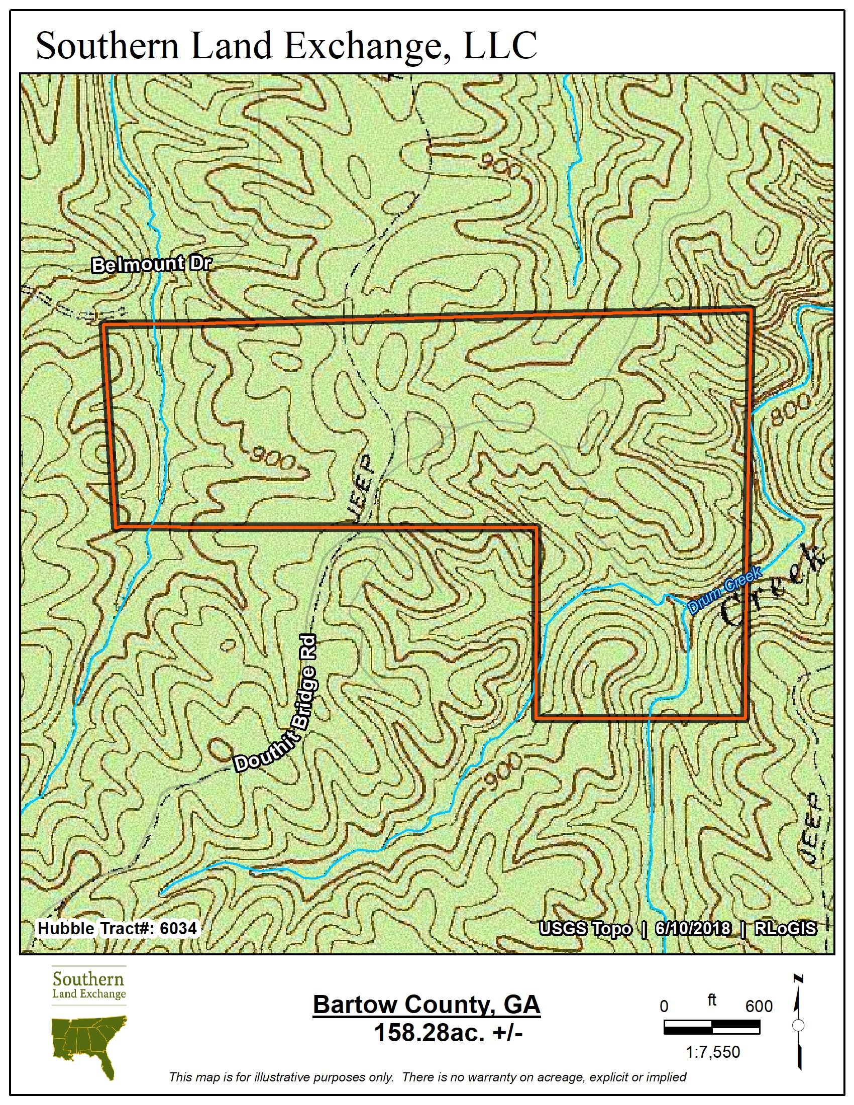 Research Parcel InformationI-75 North to Red Top Mountain Exit. Exit west on Red Top Mountain Road. Proceed west for 2.5 miles. Road will transition to Old Alabama HWY. Continue west on Old Alabama Road for 5 miles until Old Alabama dead ends into GA HWY 61 (On the south end of the Cartersville Airport) Turn south (left) onto HWY 61. Proceed approximately 3 miles and turn left on Douthit Bridge Road. Follow Douthit Bridge Road (Road turns into a single lane gravel road) for 1.6 miles. Road dead ends into the property.