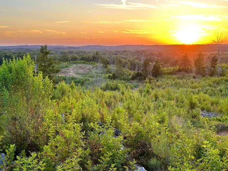 About 128 acres are forested, with loblolly pine planted in 2022. These trees are now in their third growing season. The area is open with abundant grasses and little hardwood competition, making an open habitat that supports deer, rabbits, and quail. Long views across the property are abundant. A prominent hill near the center of the tract gives a 180-degree vista of the countryside for miles around.